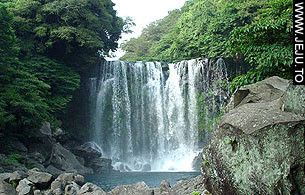 22m 절벽에서 떨어져 수심21m의 못을 이루고,이 물은 다시 제 2폭포,제 3폭포를 거쳐 바다로 흘러 들어간다.특히 제1폭포가 떨어지는